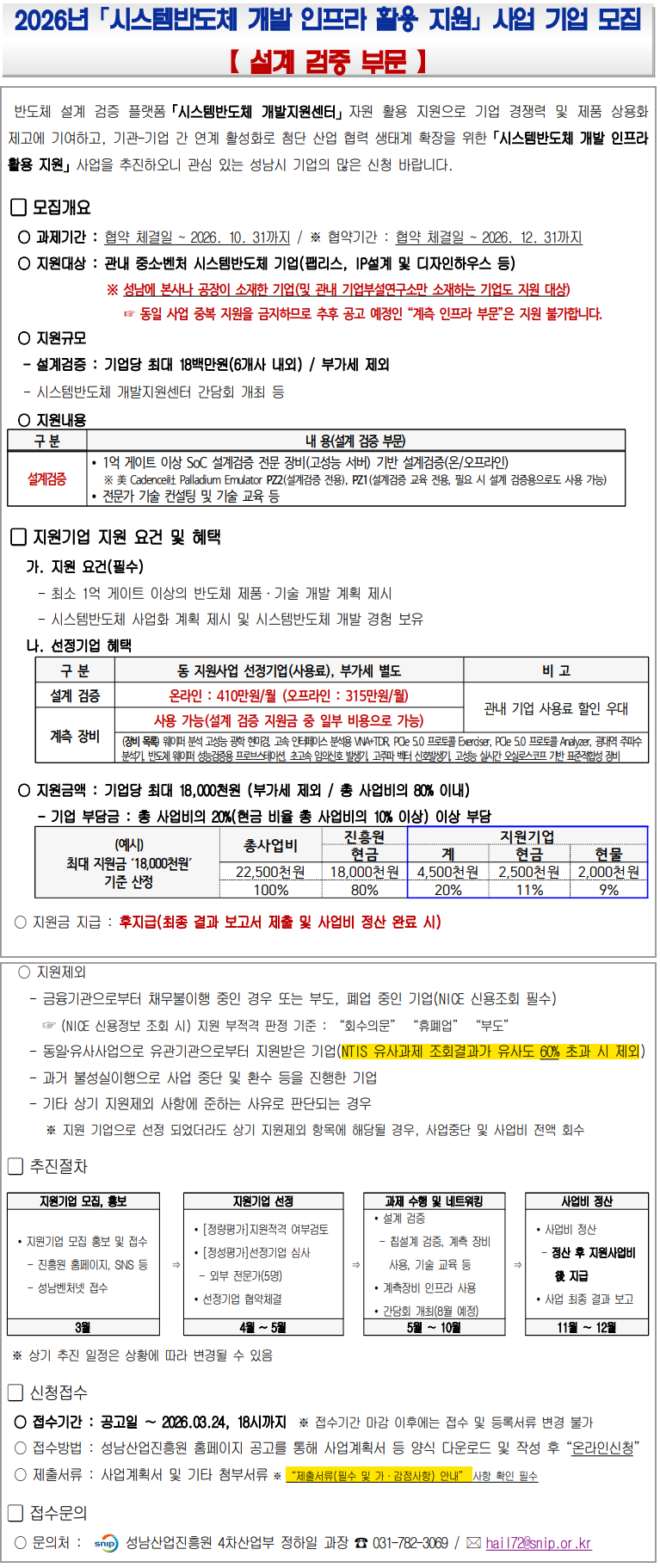 붙임 1. 2026년 시스템반도체 개발 인프라 활용 지원 사업 [설계 검증 부문] 기업 모집 공고문.pdf