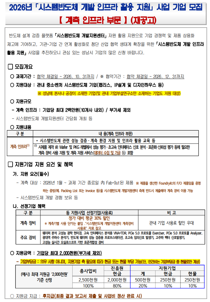 붙임 1. 2026년 시스템반도체 개발 인프라 활용 지원 사업 [계측 검증 부문]_필수제출서류 및 사업계획서.zip.zip