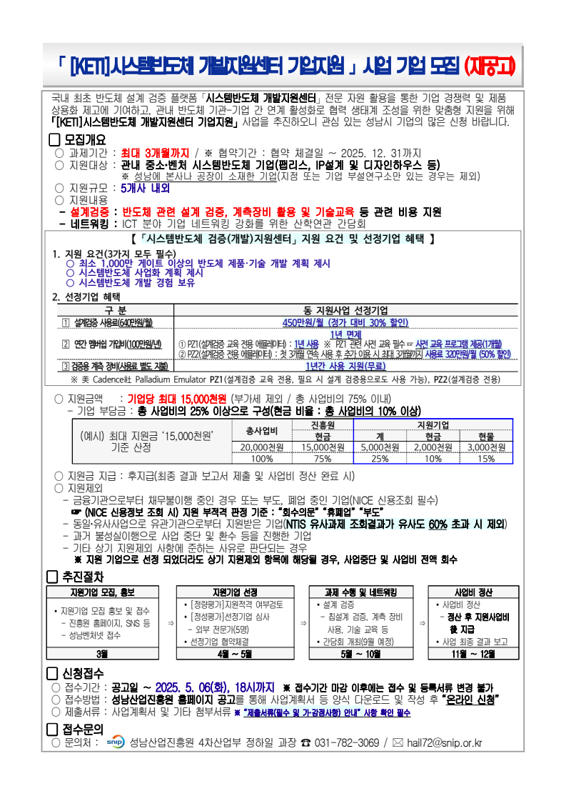 이에 따라 2025년 연간 설계검증 지원 프로그램에 참여할 기업을 모집 중이며,