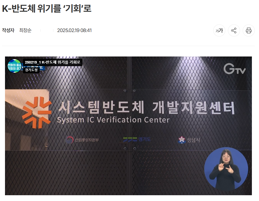 출처 : 경기도 뉴스포털,“K-반도체 위기를‘기회’로”, 2025년 2월 19일, https://gnews.gg.go.kr/news/news_detail_m.do?number=202502190844501496C048&s_code=daily&page=1&SchYear=&SchMonth=